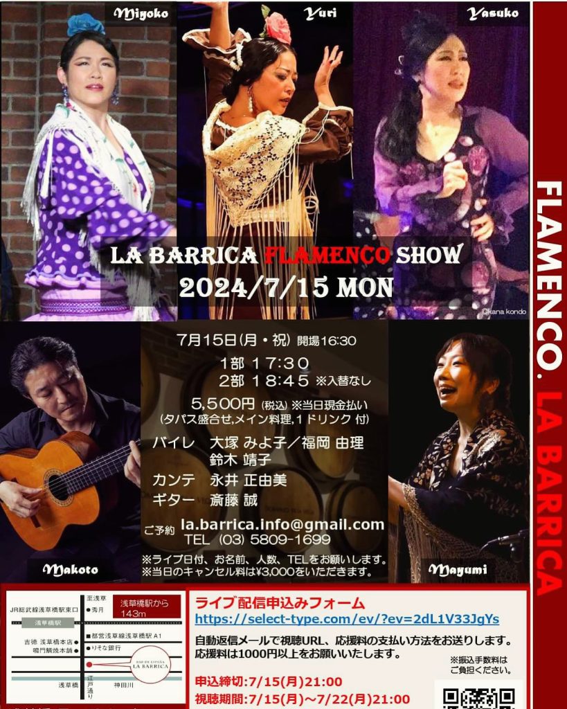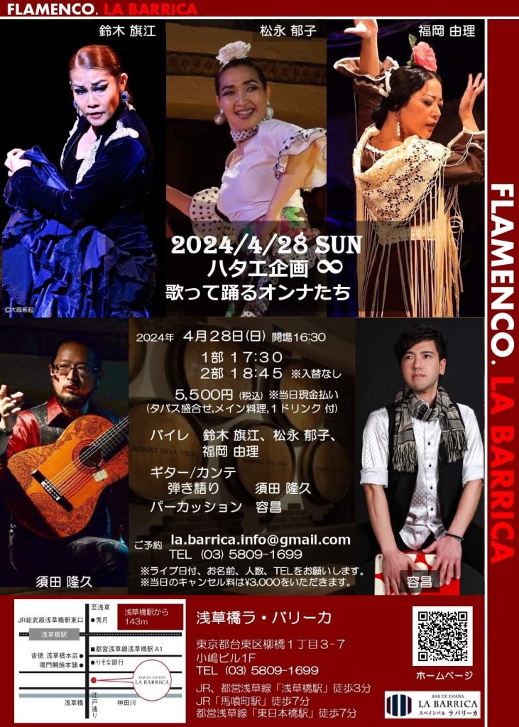 | 出演 | ギター・カンテ/須田隆久 カホン/容昌 バイレ/鈴木旗江・松永郁子・古屋美枝・福岡由理 |