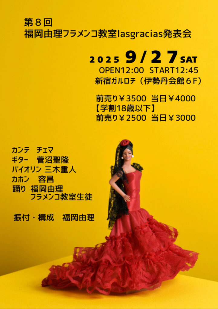 | 出演 | ギター/菅沼聖隆 カンテ/近藤裕美子 バイレ/丸山加代子・西平麗香・中岡直子・石田泰子・福岡由理 |