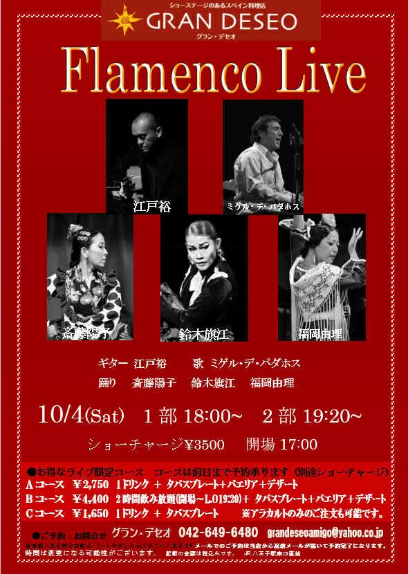 | 出演 | ギター/斎藤誠 カンテ/永井正由美 バイレ/大塚みよ子・鈴木靖子・福岡由理 |